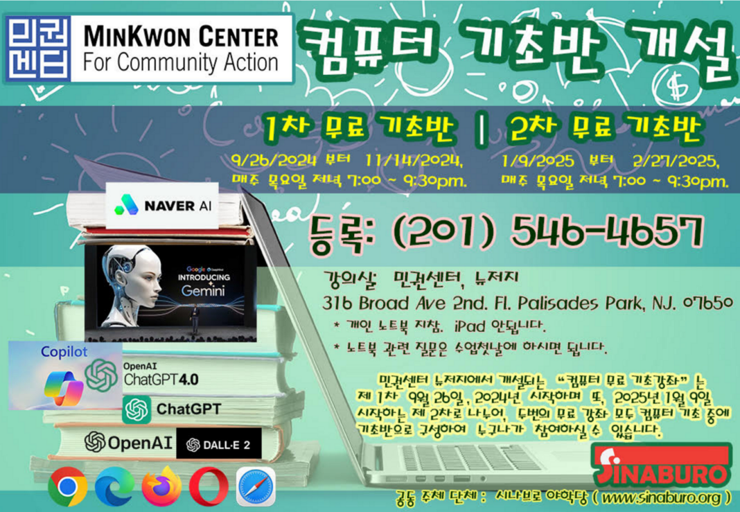 뉴저지 민권센터(MinKwon Center for Community Action)가 지역사회의 디지털 격차 해소를 위해 2025년 초 무료 컴퓨터 교육 프로그램을 대폭 확대 운영한다. 이번 교육은 AI 시대에 발맞춰 디지털 기초 역량 강화에 중점을 두고, 실용적인 오피스 프로그램 활용 능력 향상을 목표로 구성됐다.