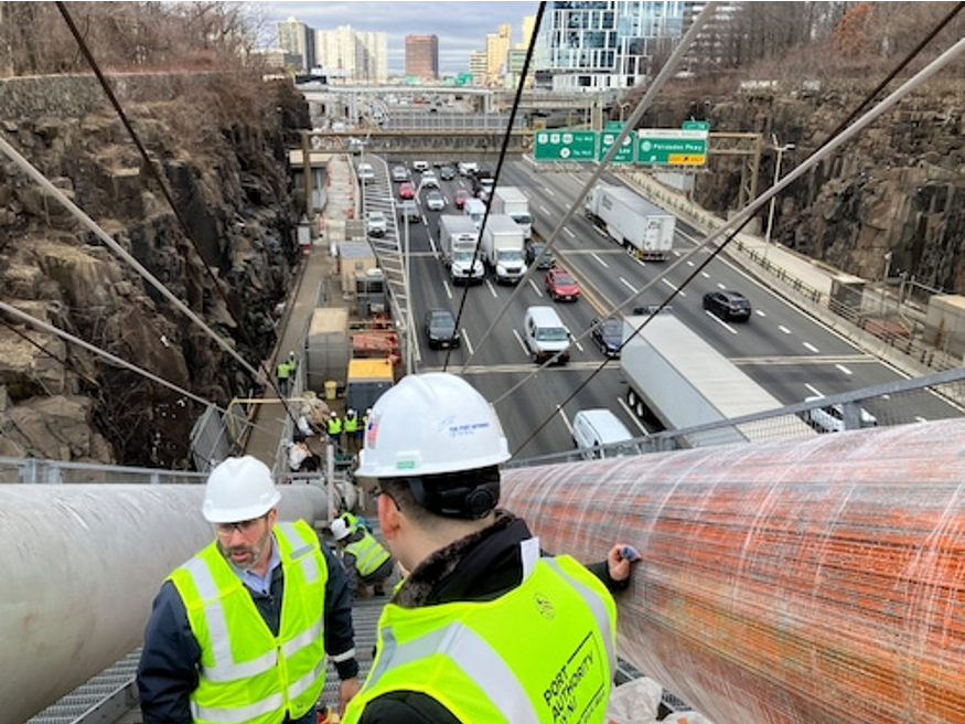 뉴저지와 뉴욕을 잇는 조지 워싱턴 교량의 20억 달러 규모 복원 및 재건 프로젝트가 중요한 이정표를 달성했다. 지난 목요일 교량의 주요 케이블과 도로를 연결하는 592개의 서스펜더 로프 중 마지막 케이블이 설치된 것이다.